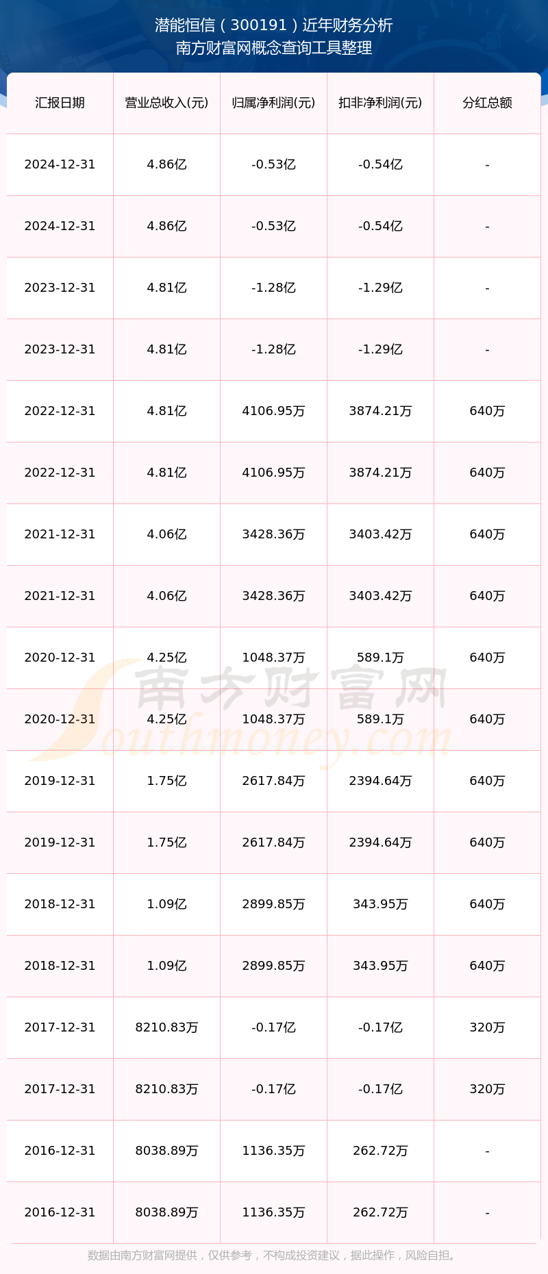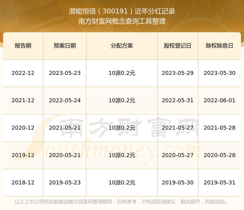 近年潛能恒信分紅派息情況如下表所示: