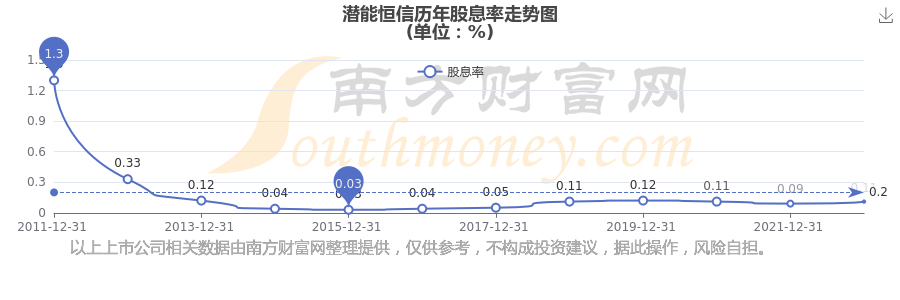 潛能恒信歷年股息率走勢如下圖: