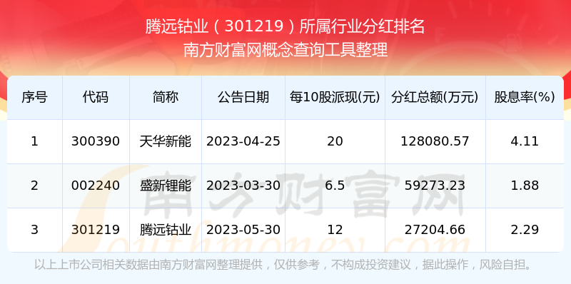 二、騰遠(yuǎn)鈷業(yè)301219行業(yè)分紅排名