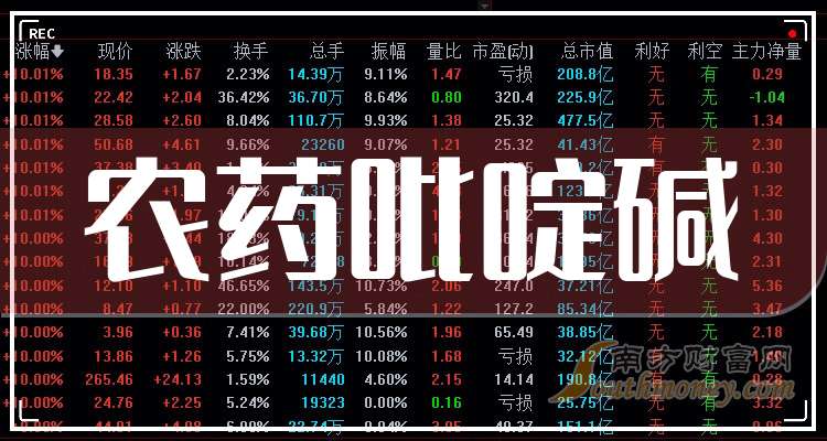 據(jù)南方財富網(wǎng)概念查詢工具數(shù)據(jù)顯示,A股2025年農(nóng)藥吡啶堿上市龍頭企業(yè)名單