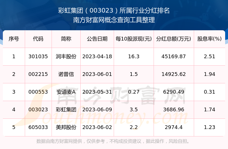 二、彩虹集團(tuán)003023行業(yè)分紅排名