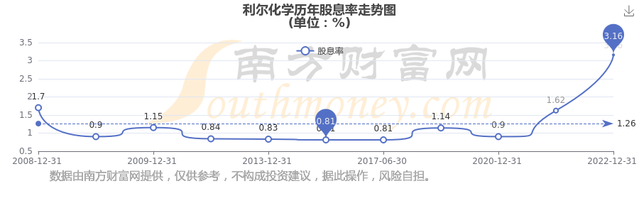 近年利爾化學(xué)年度股息率走勢如下圖: