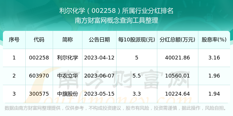 二、利爾化學(xué)002258行業(yè)分紅排名