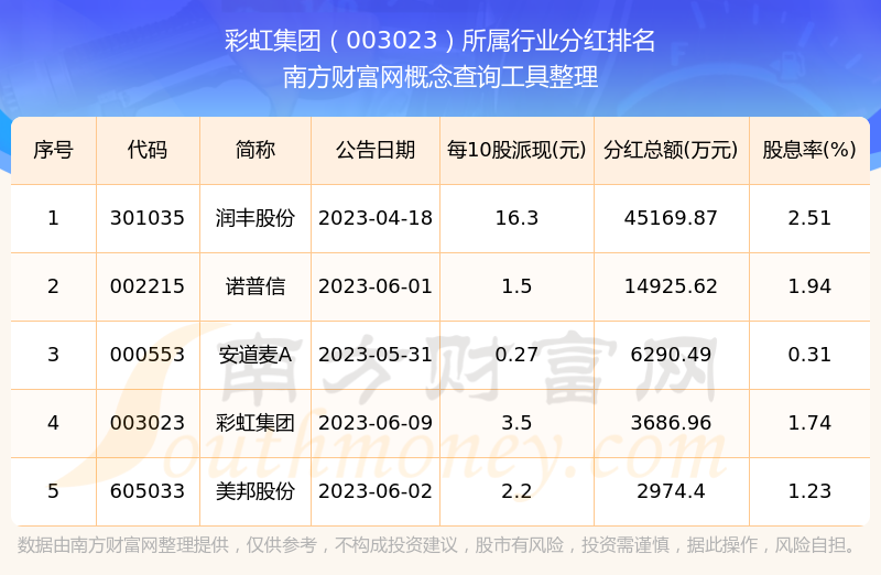 二、彩虹集團(tuán)003023行業(yè)分紅排名
