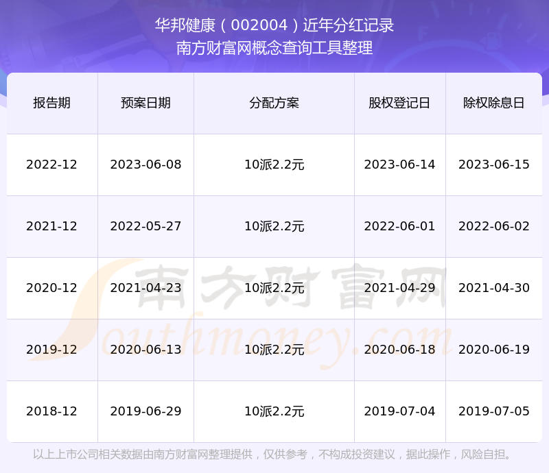 華邦健康最新一次公布的分紅方案:10派2.2元。