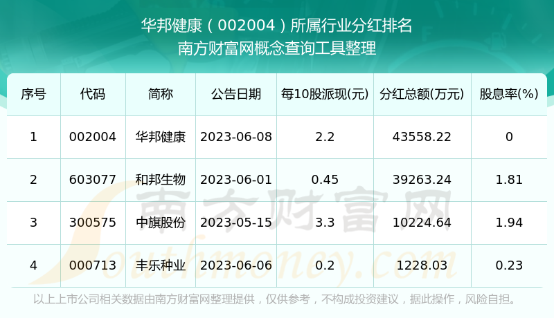 按照南方財富網(wǎng)趨勢選股系統(tǒng)統(tǒng)計,華邦健康所屬行業(yè)為農(nóng)藥獸藥行業(yè),農(nóng)藥獸藥行業(yè)分紅排名情況如下表: