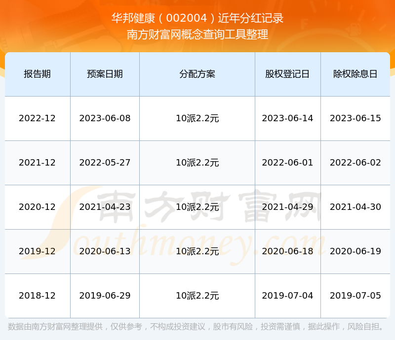 華邦健康最新一次公布的分紅方案:10派2.2元。