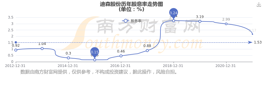 迪森股份歷年股息率走勢(shì)如下圖: