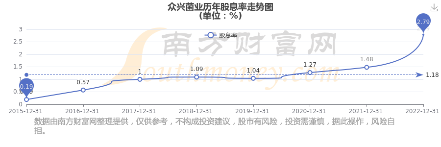 眾興菌業(yè)歷年股息率走勢如下圖:
