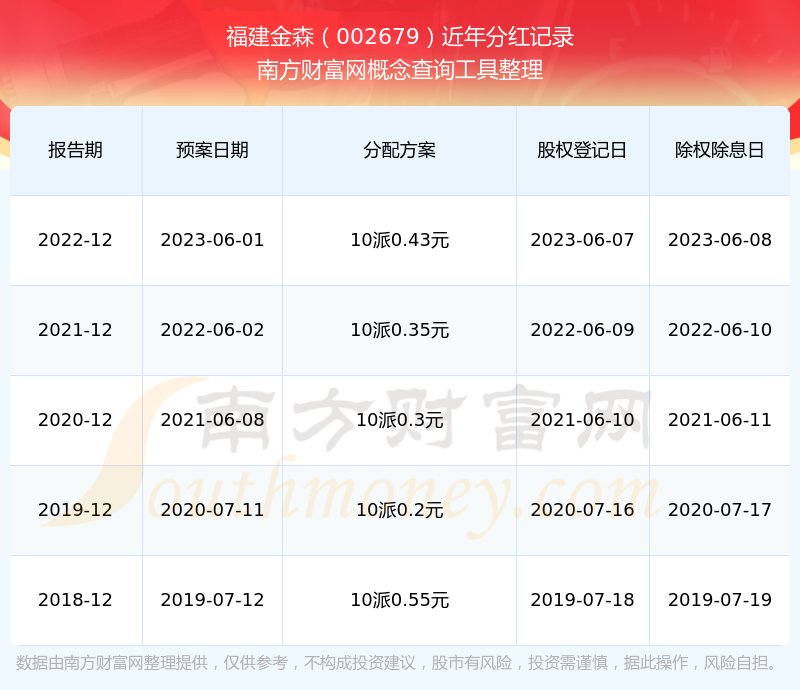 福建金森最新一次公布的分紅方案:10派0.43元。
