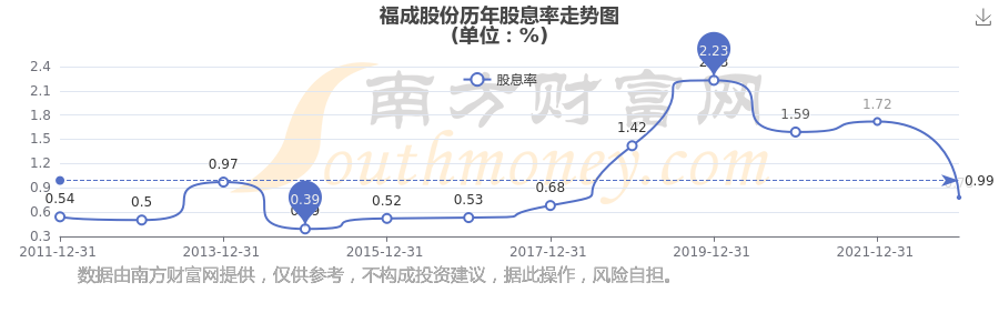 福成股份最新一次公布的分紅方案:10派0.54元。