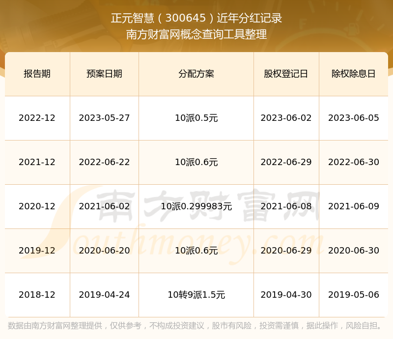 正元智慧最新一次公布的分紅方案:10派0.5元。