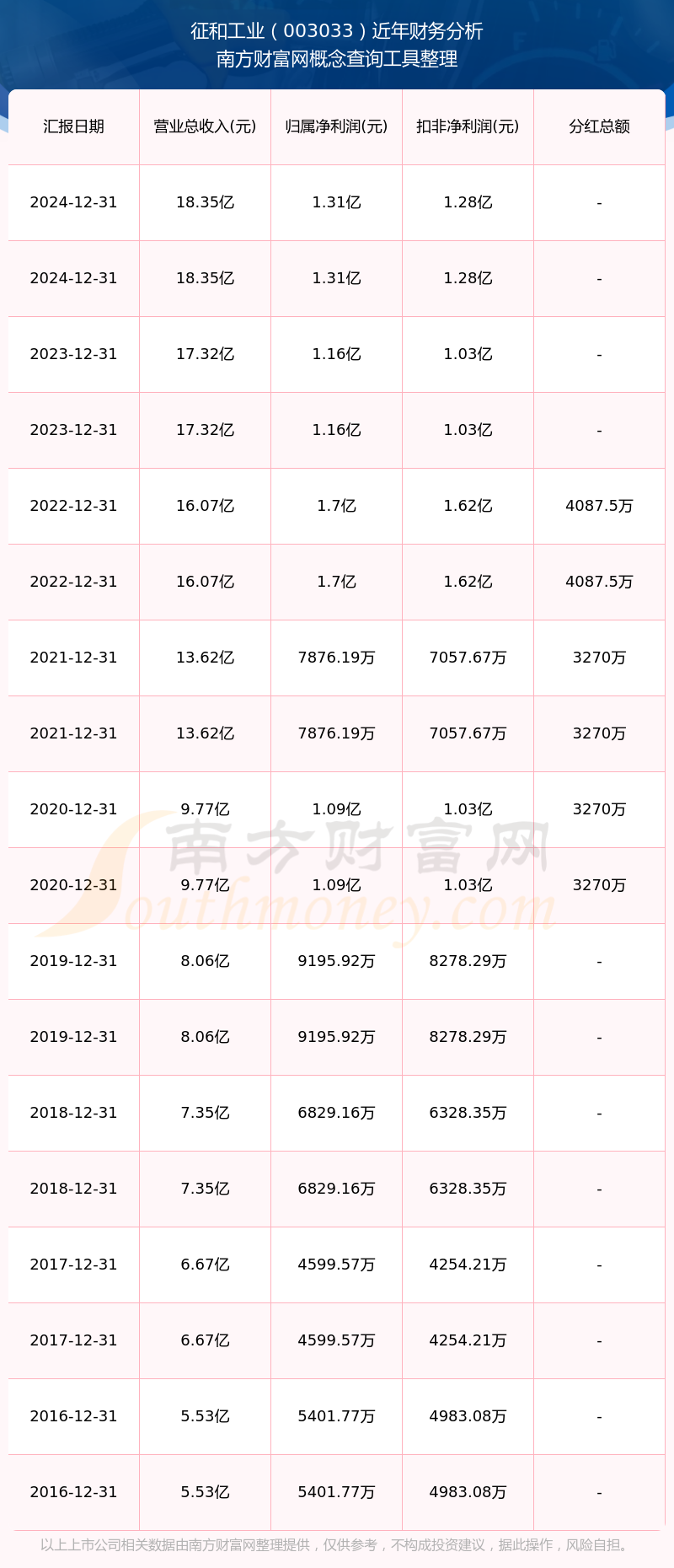 2024年征和工業(yè)總營(yíng)收18.35億,同比增長(zhǎng)5.94%;凈利潤(rùn)1.31億,同比增長(zhǎng)12.91%;銷售毛利率21.39%。