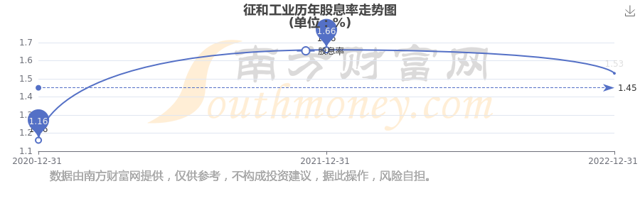 征和工業(yè)歷年股息率走勢(shì)如下圖: