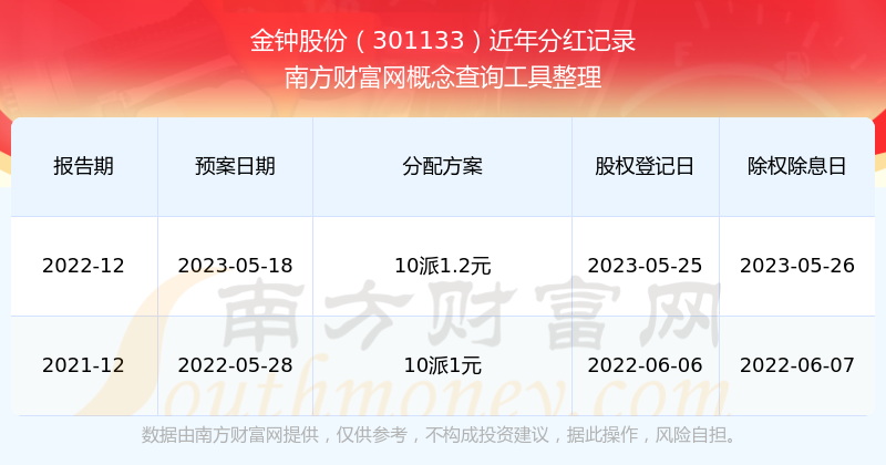 金鐘股份最新一次公布的分紅方案:10派1.2元。