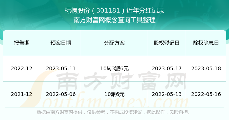 標(biāo)榜股份最新一次公布的分紅方案為10轉(zhuǎn)3派6元。本次權(quán)益分派股權(quán)登記日為2023年5月17日,除權(quán)除息日為2023年5月18日,派息日為2023年5月18日。