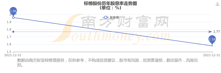 近年標(biāo)榜股份年度股息率走勢(shì)如下圖:
