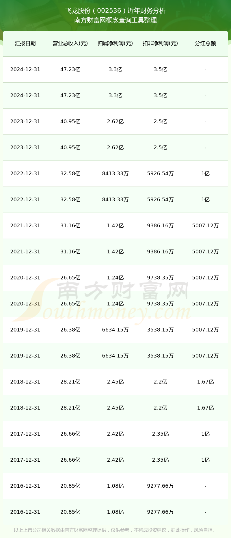 2024年飛龍股份總營收47.23億,同比增長15.34%;凈利潤3.3億,同比增長25.92%;銷售毛利率21.54%。
