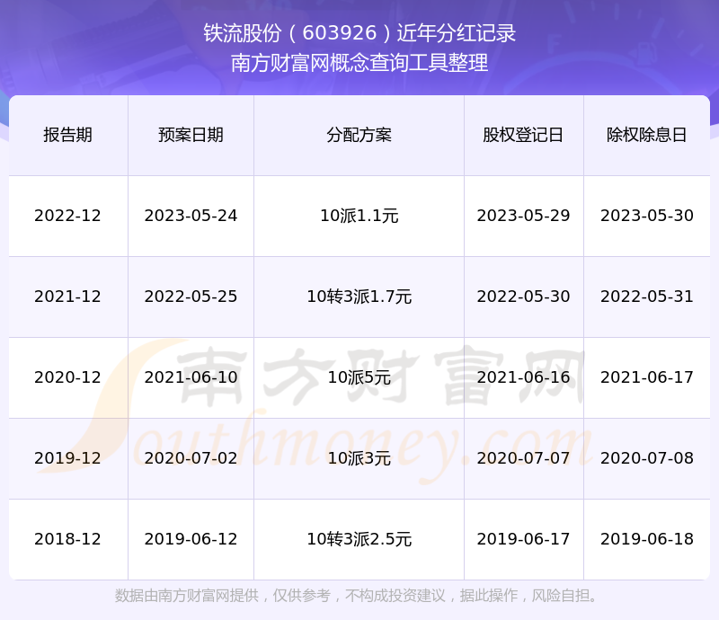鐵流股份最新一次公布的分紅方案:10派1.1元。
