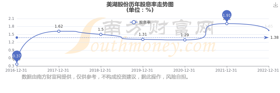 近年美湖股份年度股息率走勢如下圖: