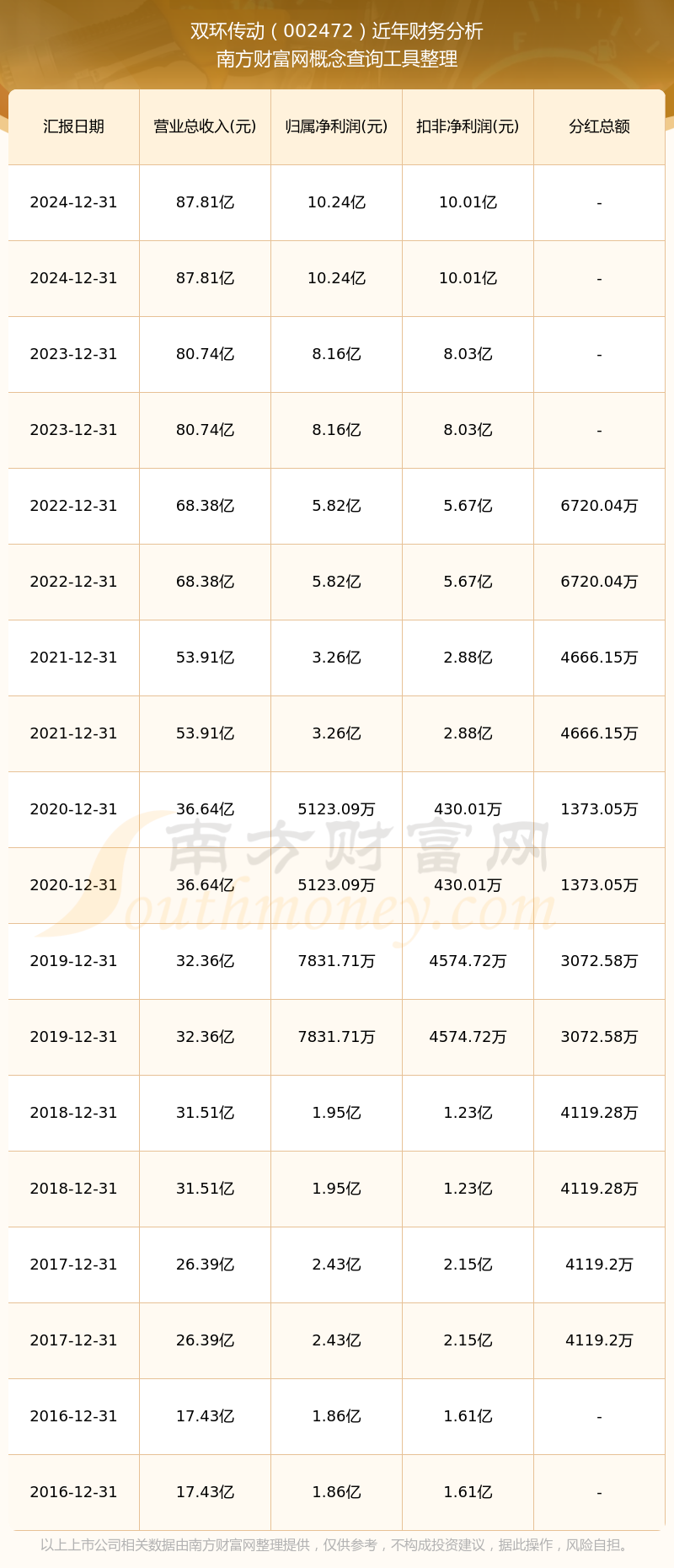 雙環(huán)傳動(dòng)歷年分紅派息情況如下表所示: