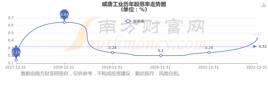 近年威唐工業(yè)年度股息率走勢如下圖: