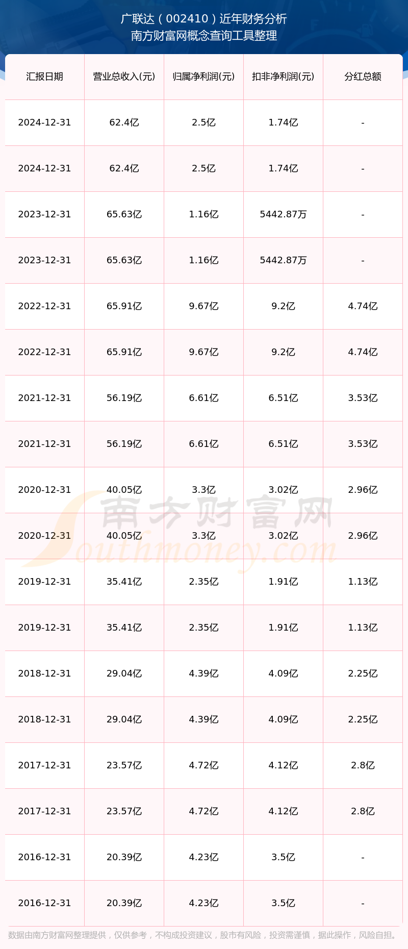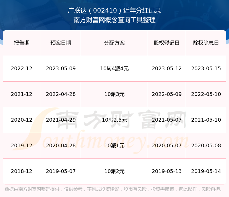 廣聯(lián)達(dá)歷年分紅派息情況如下表所示: