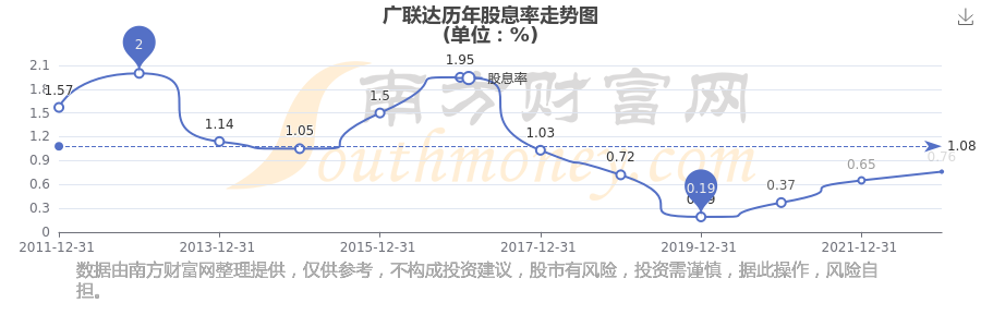 廣聯(lián)達(dá)歷年股息率走勢如下圖: