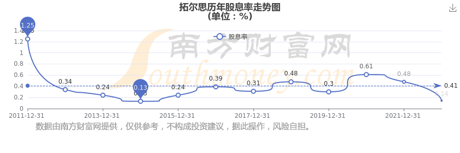 近年拓爾思年度股息率走勢(shì)如下圖: