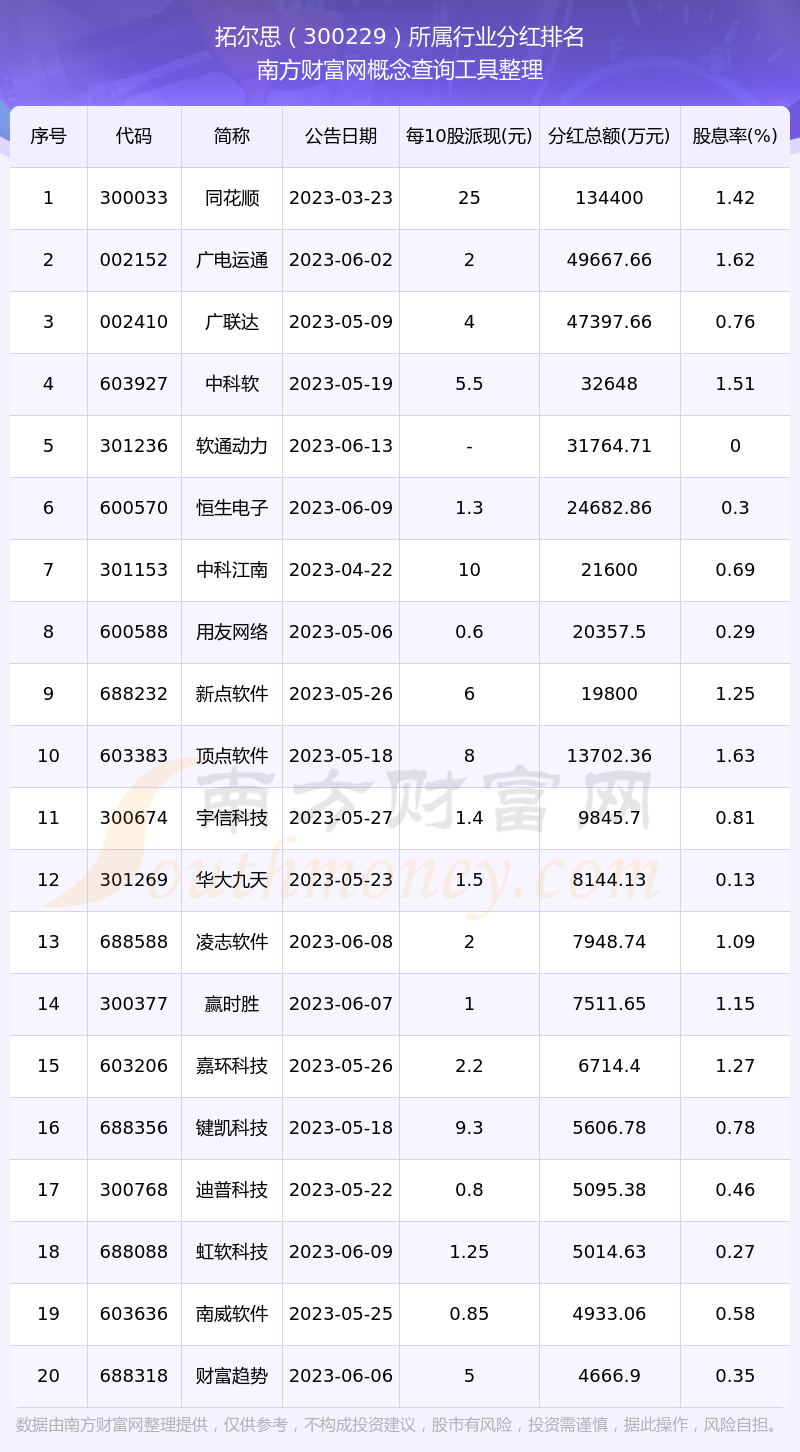 二、拓爾思300229行業(yè)分紅排名