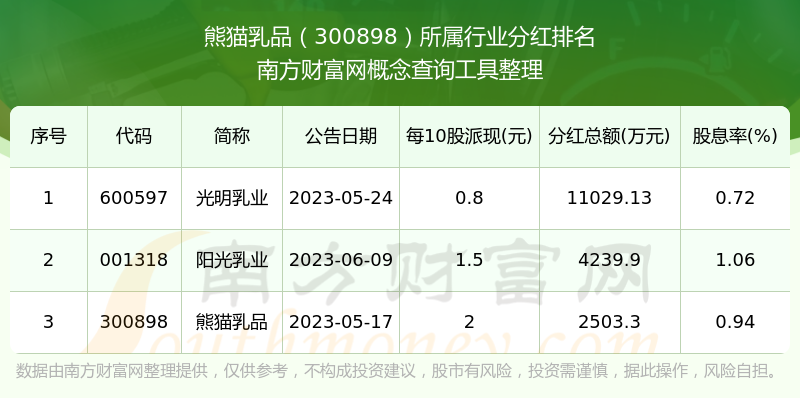 二、熊貓乳品300898行業(yè)分紅排名
