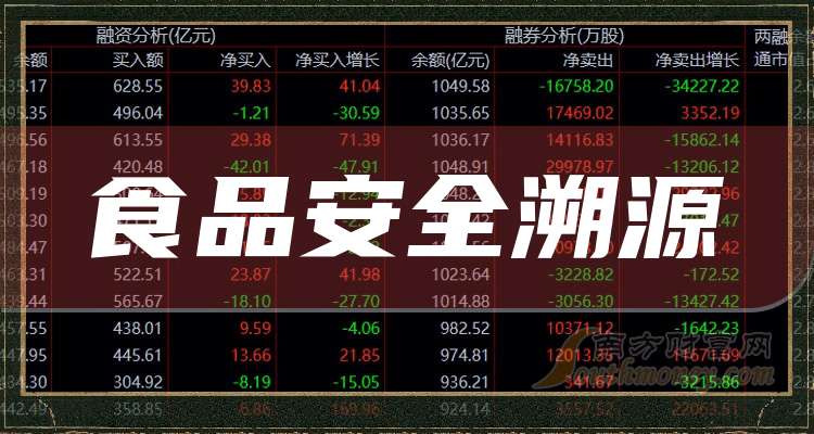 據(jù)南方財富網(wǎng)概念查詢工具數(shù)據(jù)顯示,食品安全溯源概念股有: