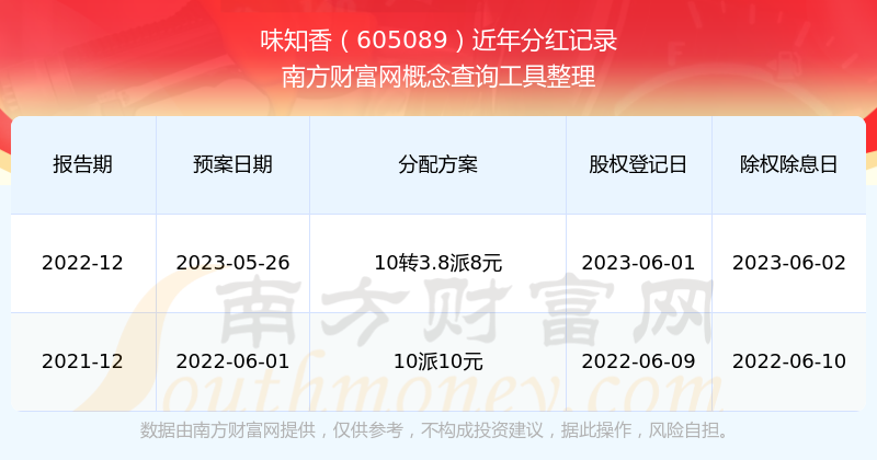 味知香最新一次公布的分紅方案:10轉(zhuǎn)3.8派8元。