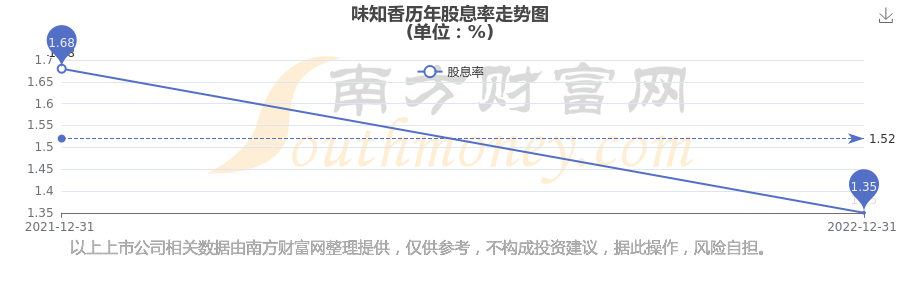 味知香歷年股息率走勢(shì)如下圖: