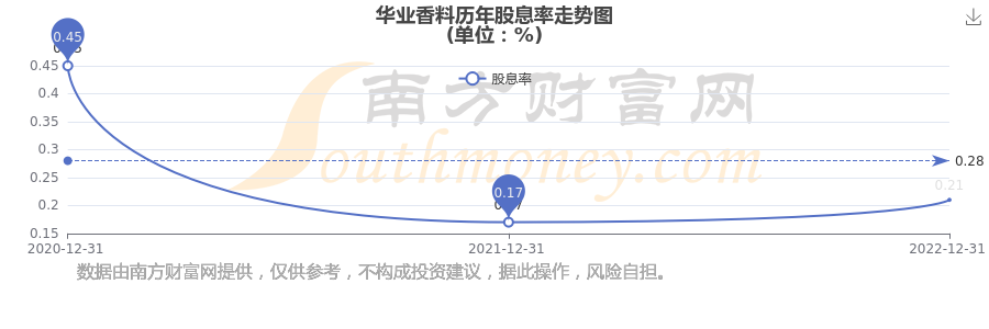 華業(yè)香料歷年股息率走勢(shì)如下圖: