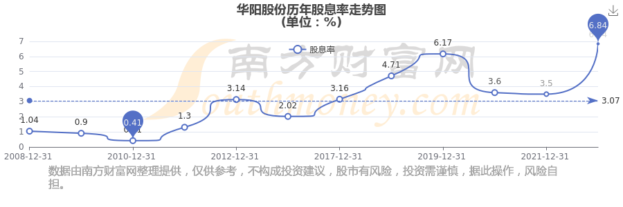 近年華陽(yáng)股份年度股息率走勢(shì)如下圖: