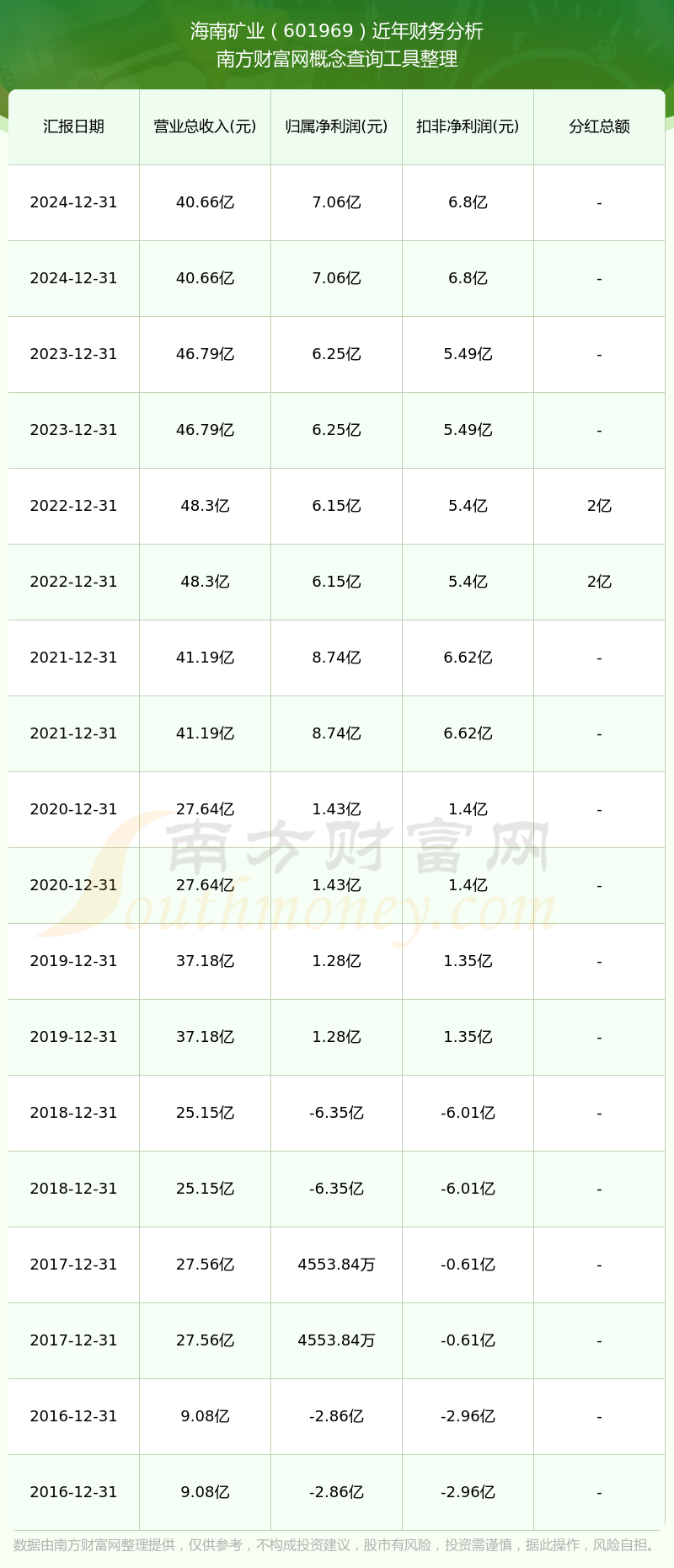 近年海南礦業(yè)分紅派息情況如下表所示: