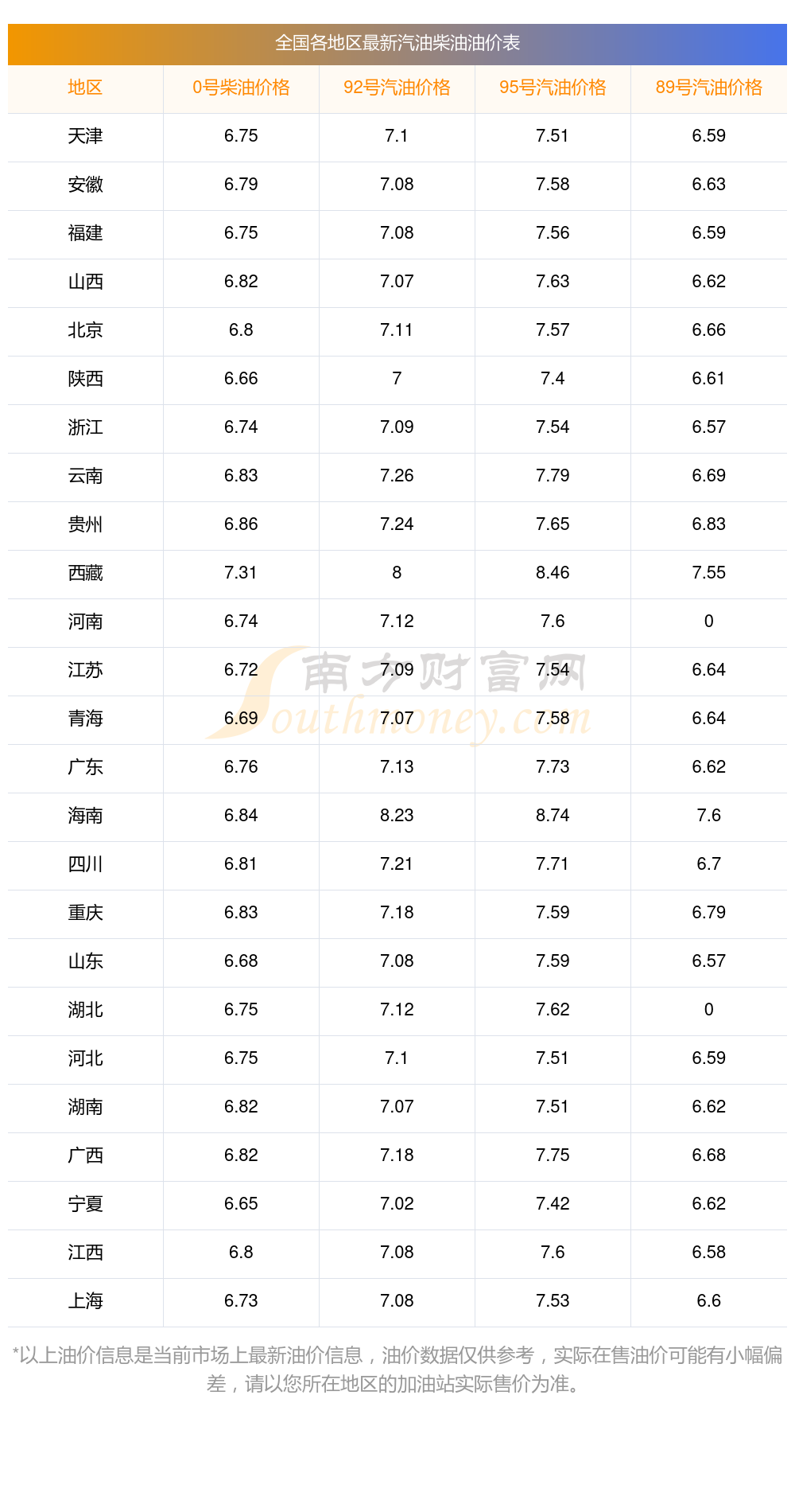 油價數(shù)據(jù)僅供參考,請以您所在地區(qū)的加油站報價為準(zhǔn)。南方財富網(wǎng)發(fā)布此信息的目的在于傳播更多信息,對使用該油價信息所導(dǎo)致的結(jié)果概不承擔(dān)任何責(zé)任。