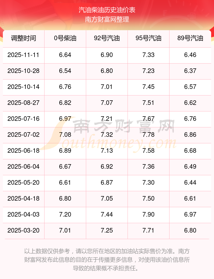 2025年95號(hào)汽油價(jià)格一覽表