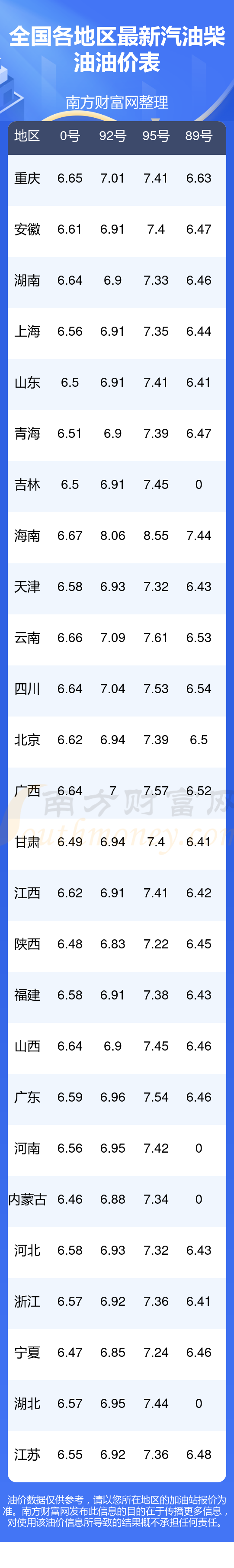 2025年11月15日全國各地油價調(diào)整及最新汽油價格表