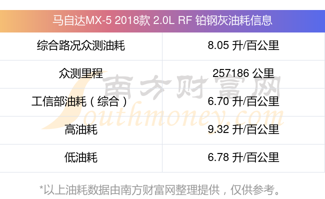 以上油耗數(shù)據(jù)由南方財(cái)富網(wǎng)整理提供,僅供參考。