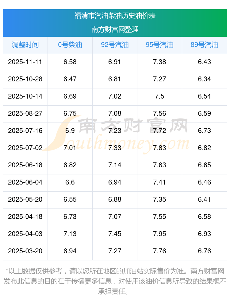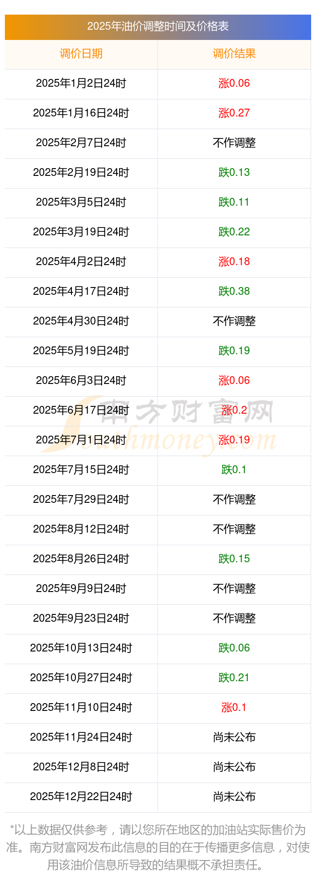 2025年福清市油價(jià)調(diào)整時(shí)間表