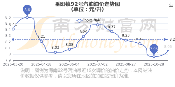 番陽鎮(zhèn)92號汽油歷史油價走勢圖