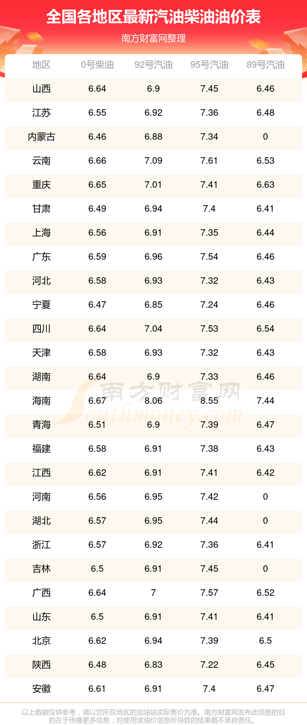 油價數(shù)據(jù)僅供參考,請以您所在地區(qū)的各加油站報價為準。