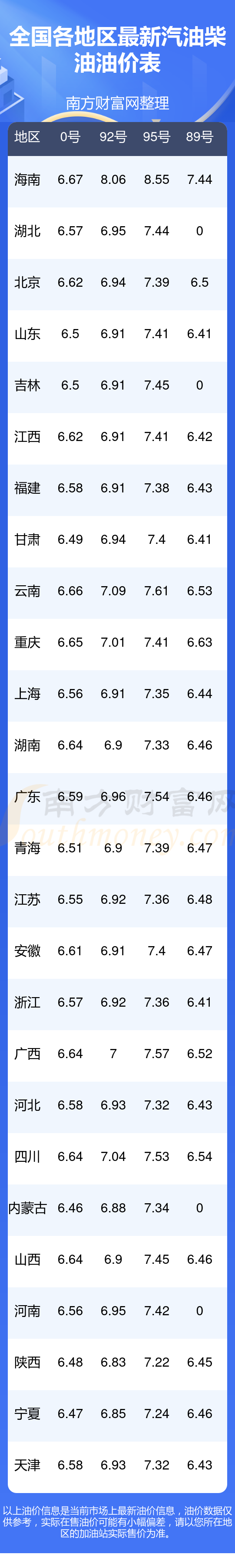 2025年11月15日全國油價(jià)調(diào)整及最新汽油價(jià)格表