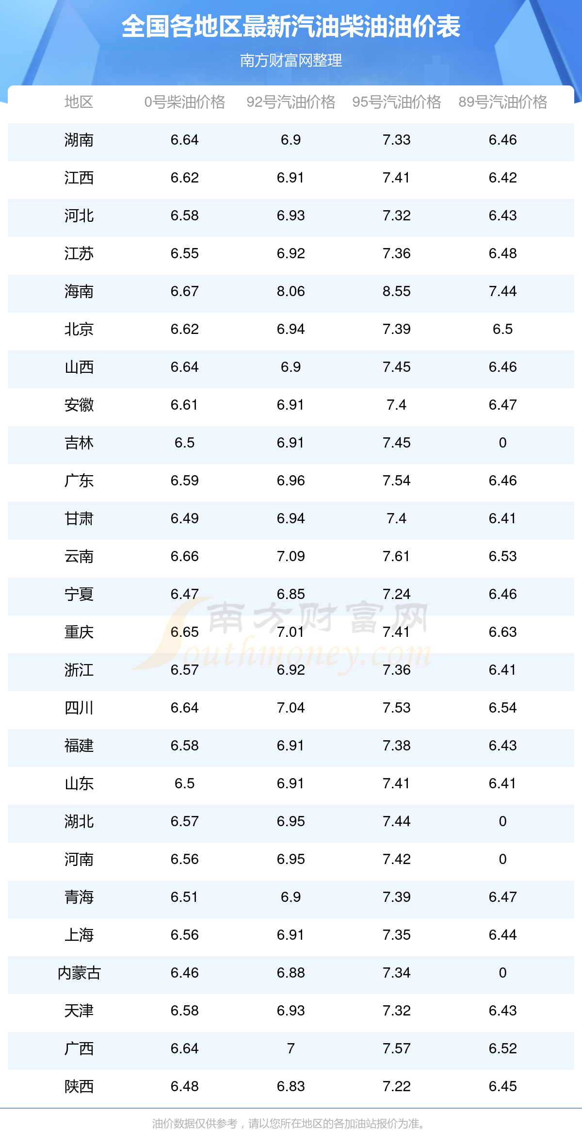 本站提供的油價(jià)數(shù)據(jù)僅供參考,具體數(shù)據(jù)以加油站報(bào)價(jià)為準(zhǔn)。