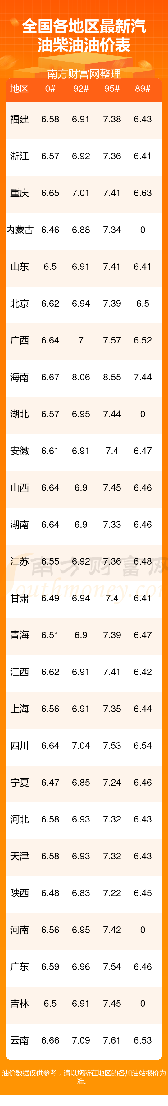 2025年11月15日全國油價(jià)調(diào)整及最新汽油價(jià)格表