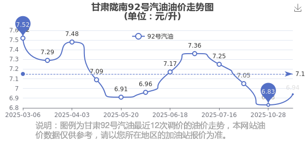 甘肅隴南最近12次調(diào)價的油價走勢圖