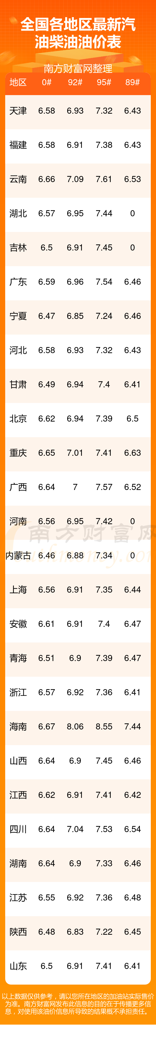 全國(guó)各地區(qū)最新油價(jià)表