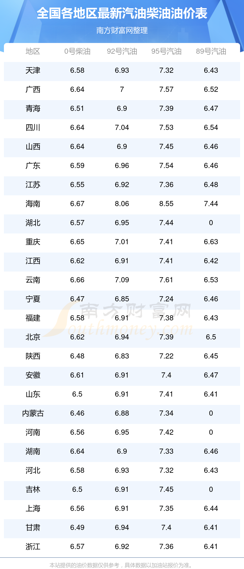 2025年11月15日全國(guó)油價(jià)調(diào)整及最新汽油價(jià)格表